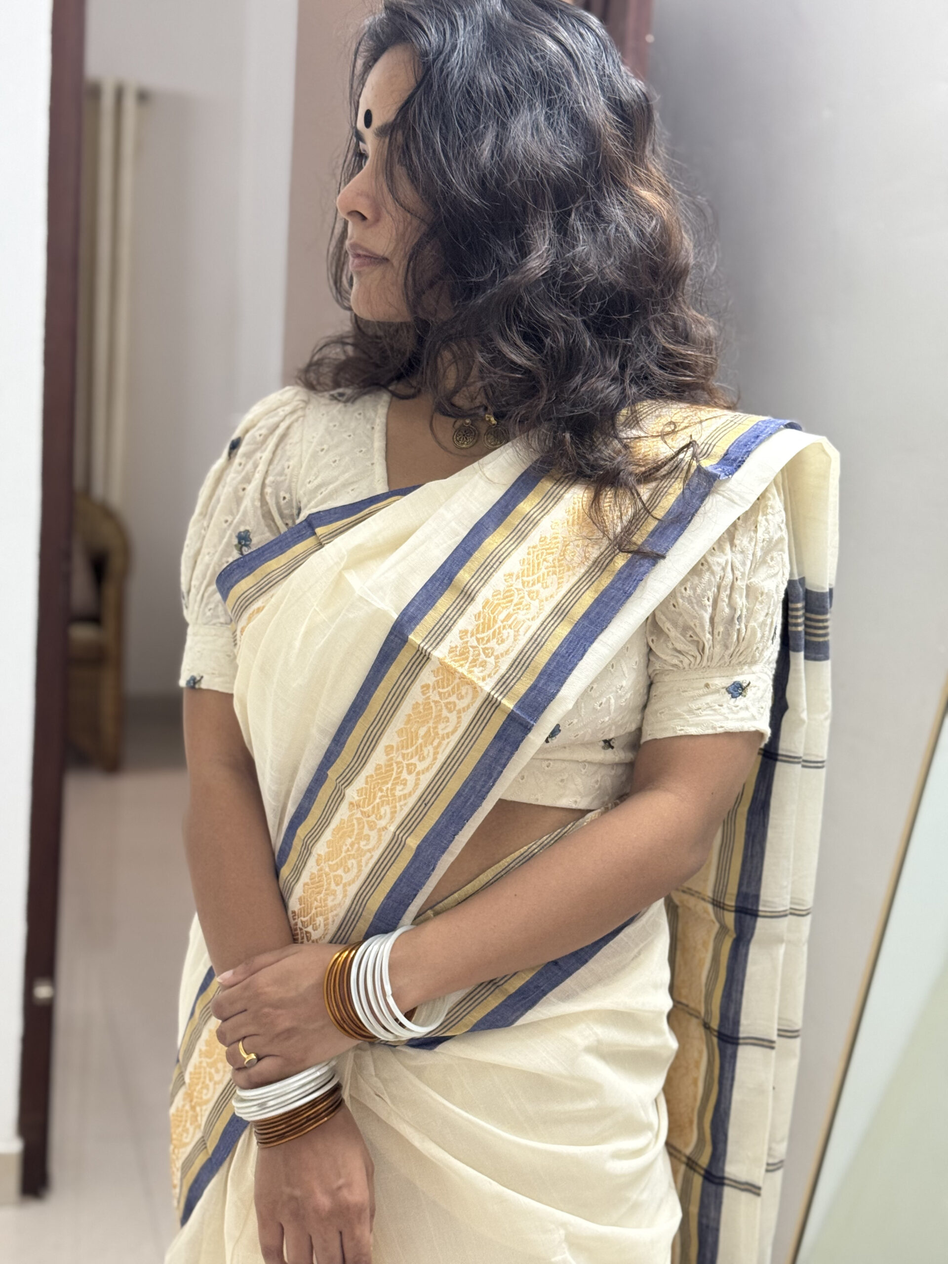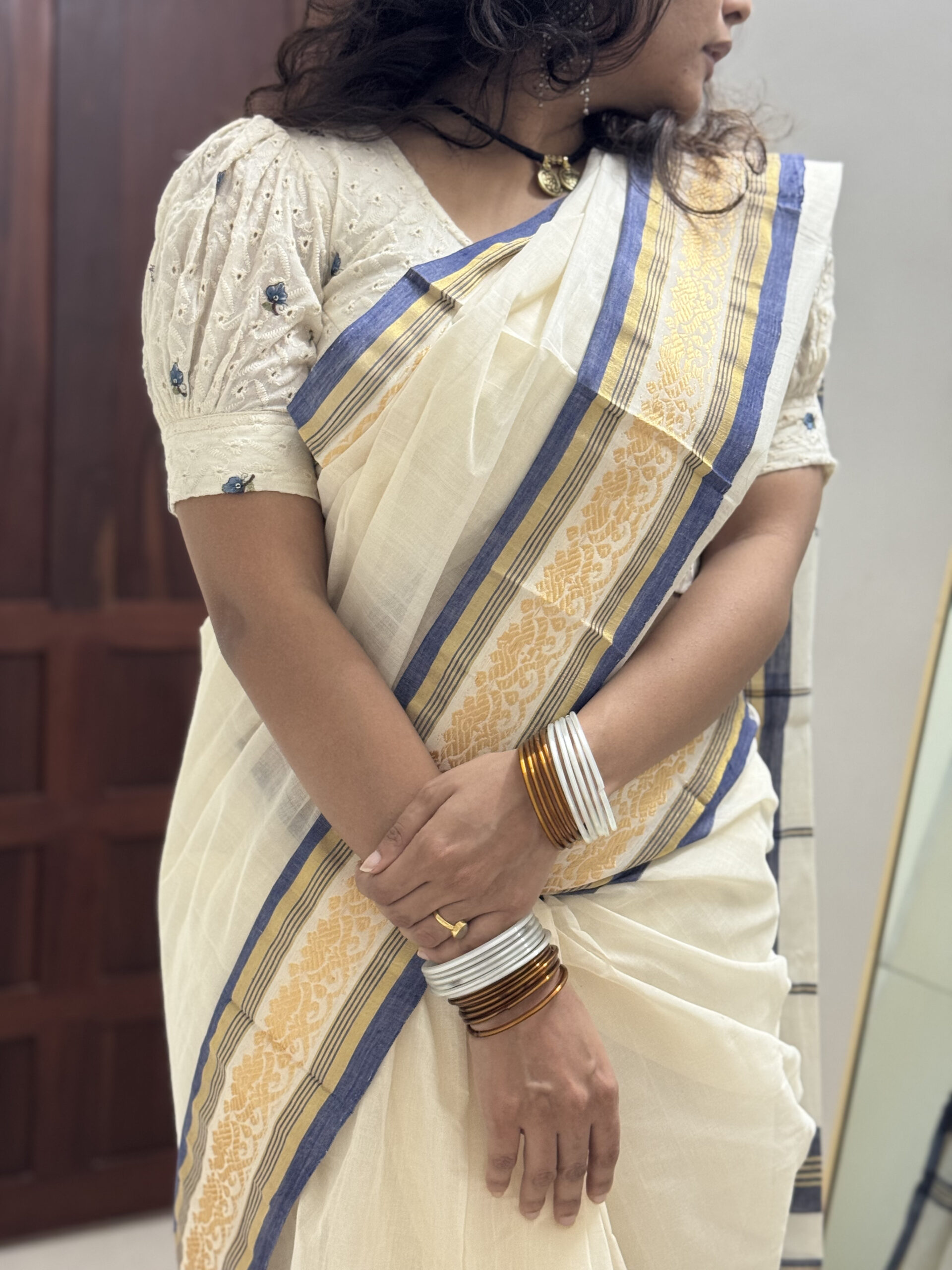 A simpleton saree from the weaves of Chendamangalam for the casual look on a Saree kinda day