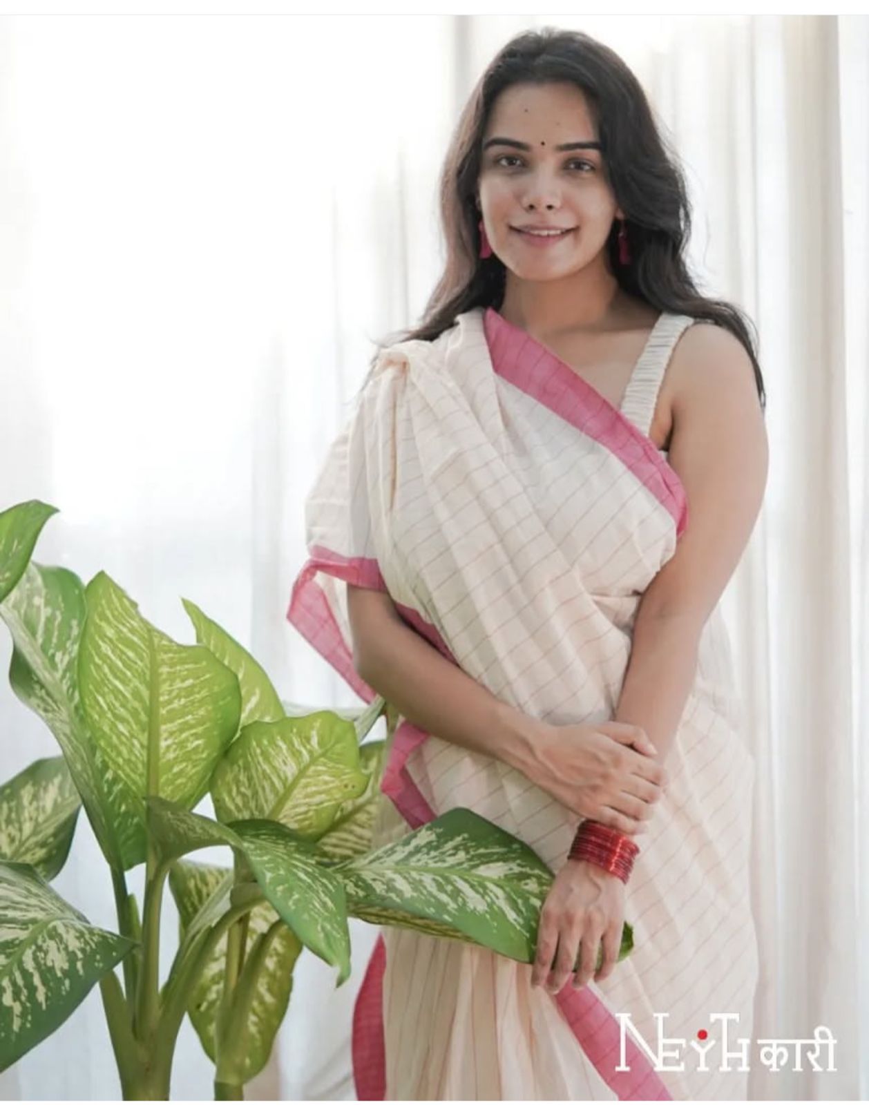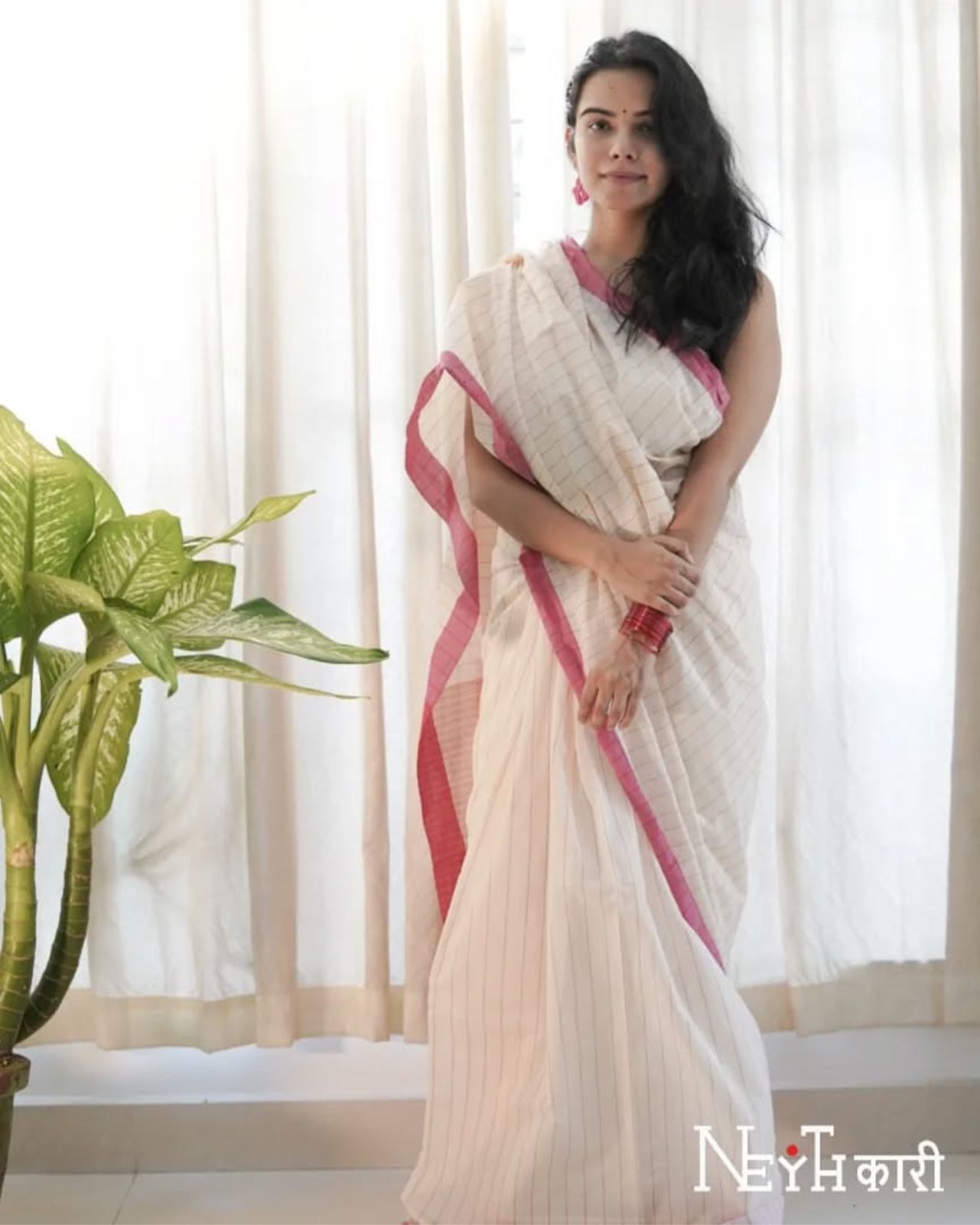 Soft cotton saree in a subtle pink and ivory shade from the weaves of Chendamangalam